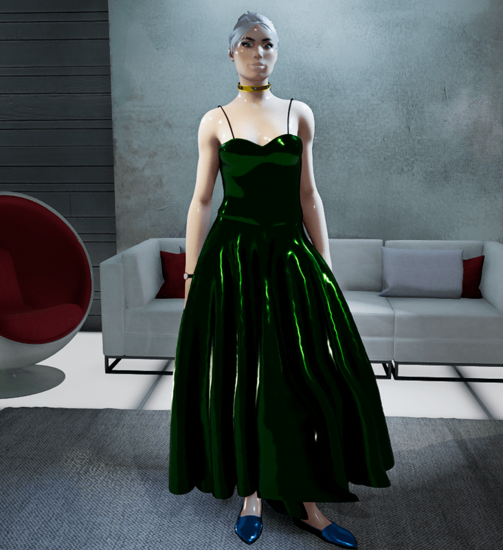 Female Cosmos Midnight-Green Metallic Gown (v2)