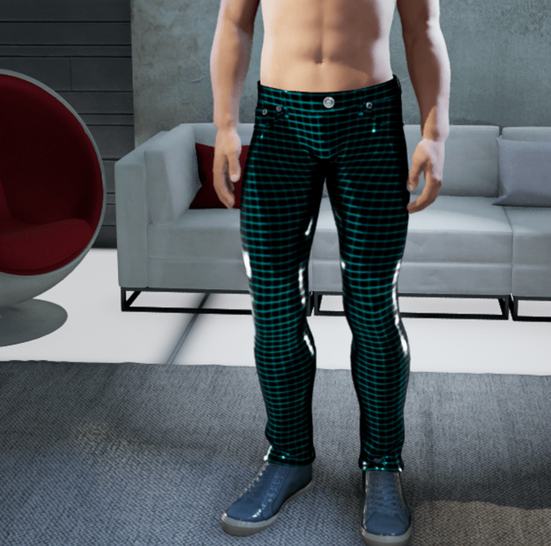 Male Glossy Blue Plaid Maltese Cross Jeans