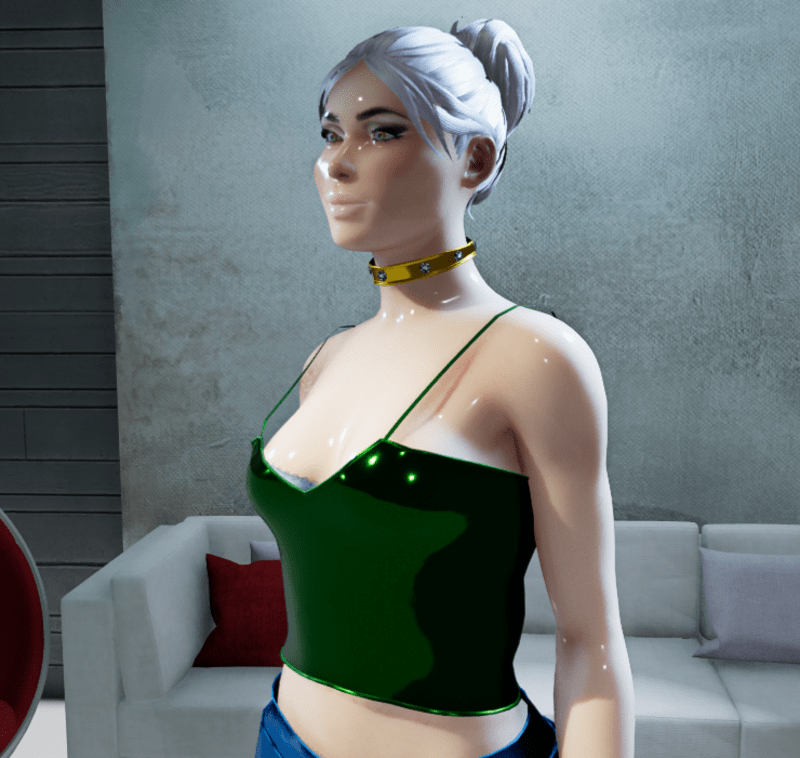 Female Cosmos Midnight-Green Metallic Top
