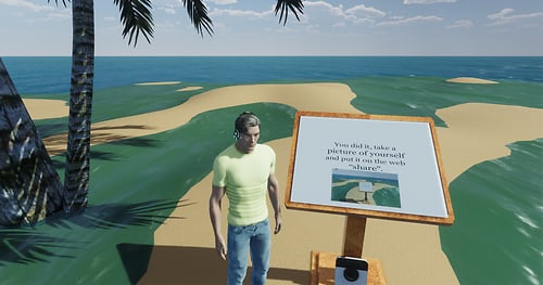 To find the exit and get to the island, 2 torches will appear in front of you, but only one of them is the right one, so let the sound of the waves guide you. Good luck! Pour trouver la sortie et aller sur l'île, 2 torches apparaîtront devant vous mais qu'une est la bonne et laissez vous guider par le bruit des vagues. Bonne chance.. France