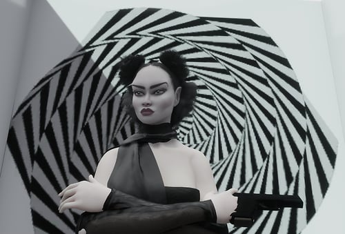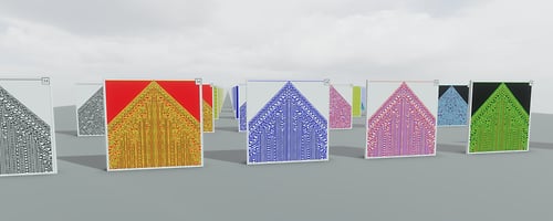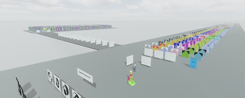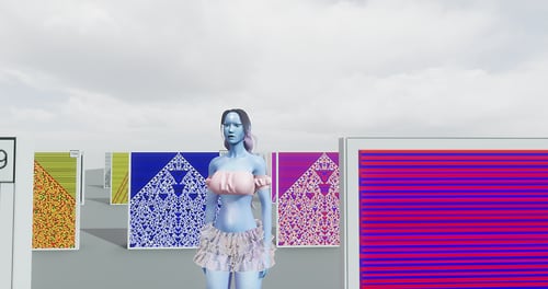 Whenever you are in the mood to contemplate existence, come to Kim's Storehouse and look around. When you cross the Sierpinski Bridge, look down. You'll see the largest Mandelbrot Set in existence. It could only happen in virtual reality. It's surrounded by Julia sets. You can see it up close if you feel like leaping. For those who are nervous about heights, its a shorter leap from the Fast Transit Station.