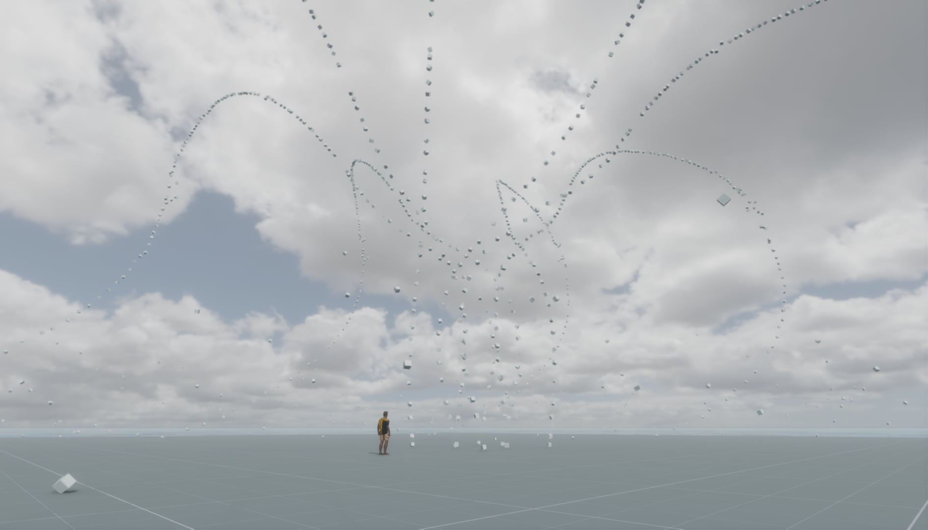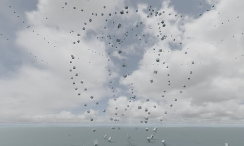 Demonstration of a recycling rezzer acting as a physical particle system. Once it gets warmed up, you'll see it "rezzing" 200 particles per second, way beyond the technical limit of 16 per second. Note that initial tests show the scene is touchy. It and/or your client may crash when trying to get here or leaving the scene.
