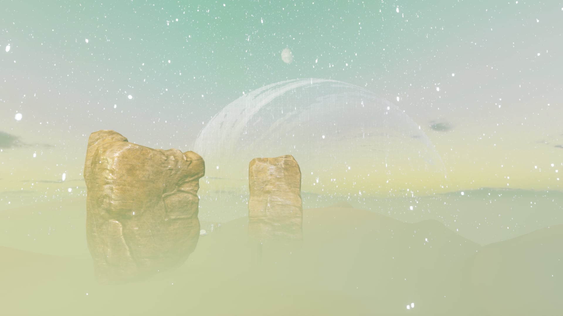 Another story of searching for the new worlds to live. After many years of evolution, humans got new aspects of body as they're evolving to a new journey over thousands years. Now they are still chasing the survival existence. On this world they have found new world to live, they are happy and excited. "This desert is available and efficient to grow life even though It's a desert, there Is snow falling on hot ground so, soon this place will be available to stay by knowing how to manage the weather, sands, mines etc. Our flower experiment was successful and we found something In the middle of this desert, we're still trying to Identify this element, soon gonna be clear but now we are dancing on the hot grounds of our new home, the snow makes that bearable. Home Is where you find the life, when you see It all with an eternal view, there Is nothing we lost."