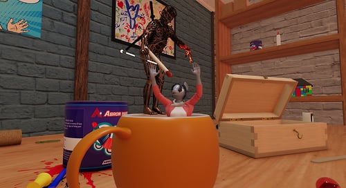 The Studio (table) of Aardman's iconic Morph (and Chas), made famous by The great Tony Hart in his popular 1980's UK kids TV show 'Take Hart'. Best experienced in VR.