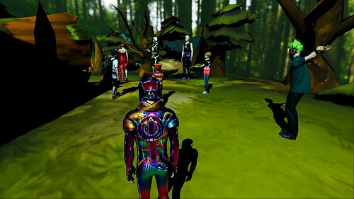 A magical forest to Zen out at. Sit on a bench, close your eyes and enjoy the sounds of the birds and river. Look for the portal when you are ready to leave.