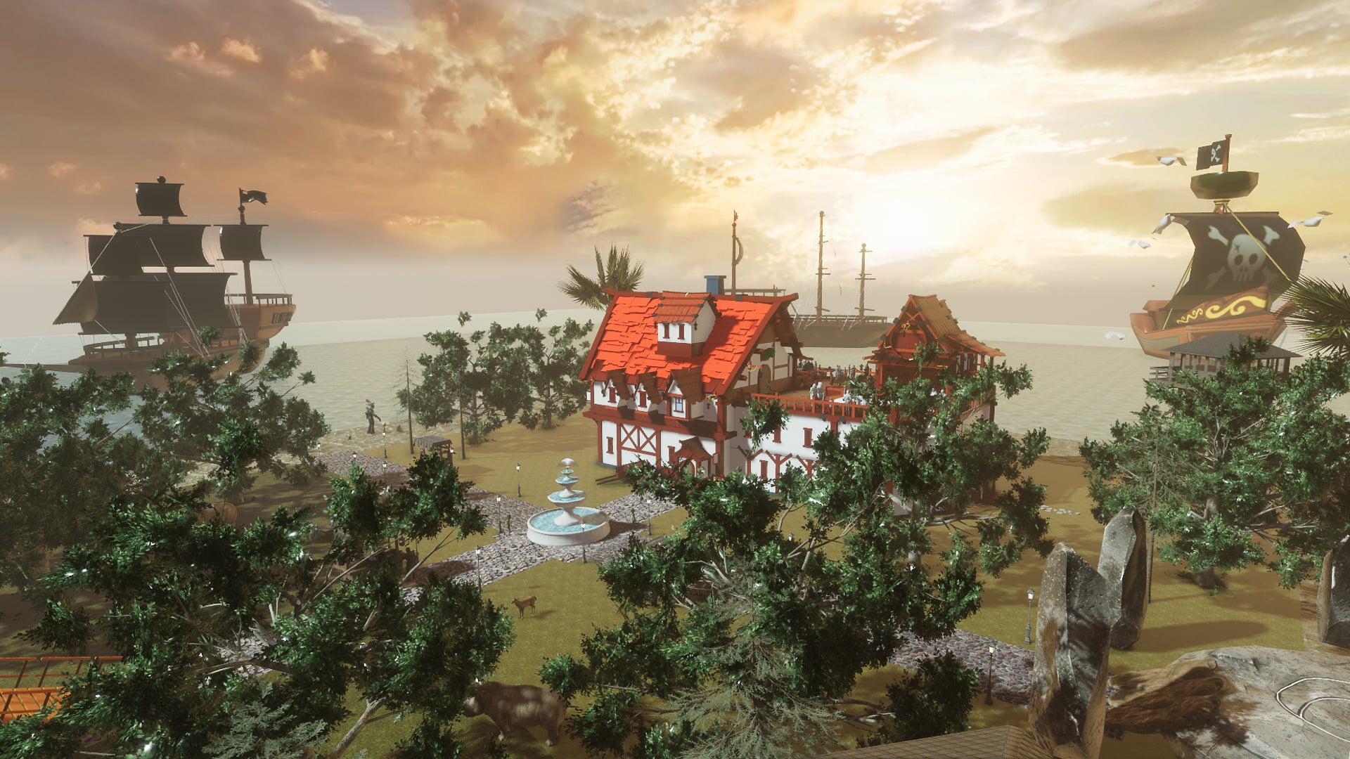 Come and rest for a while in the port of the fantasy tradition where you can exchange products, buy or sell while having fun in the canteen with a beautiful view of the sea. Ven a descansar un rato en el puerto de la tradicion de la fantasia en donde podras intercambiar productos, comprar o vender mientras te diviertes en la cantina con una hermosa vista al mar.