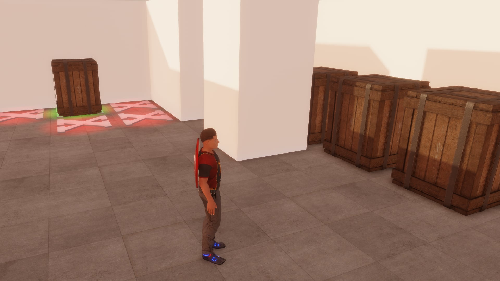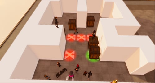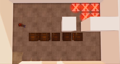 Push crates around to try to solve the puzzles. The configurations get more difficult after a solution is found. Touch the large block outside to reset the puzzle.