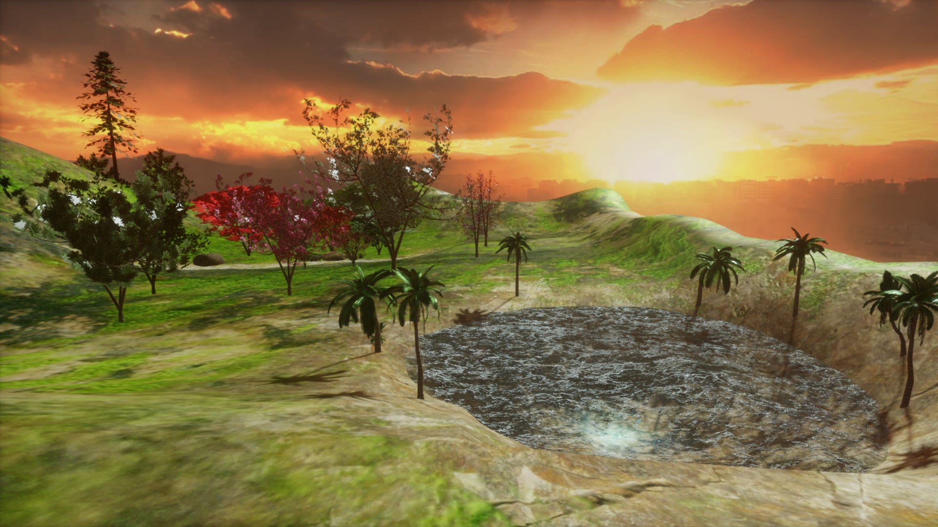 Green Field and blue lake