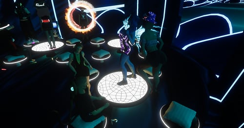 Cyberpunk themed club/music venue for your fix of synthwave and futuristic vibes. Moving parts and color changing lights. All of my experiences are BIPOC and LGBTQ+ friendly spaces