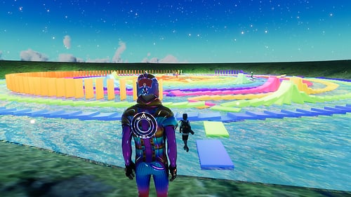 ASMR, no music, just the gentle sound of tiles clicking as they fall. Watch from above or below using the mushroom teleporters. Neverland Rainbow Clouds Skybox by FeyreDHuntress ASMR, VR