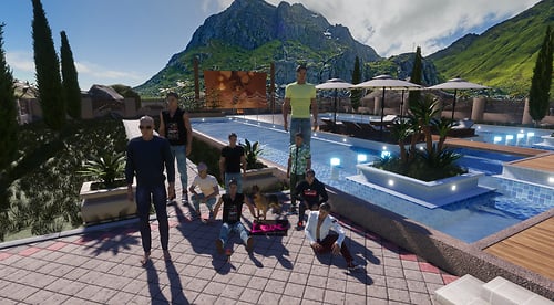 Spend the day livin the good life. 24 hour music stream. Animated German Shepard by Jamal! House gifted by Alfy! Tropical Paradise, Mansion, Pool, Swimming, Sun Bathe, Pictures, Campfire, Hangout, Sunshine, Summer Hangout