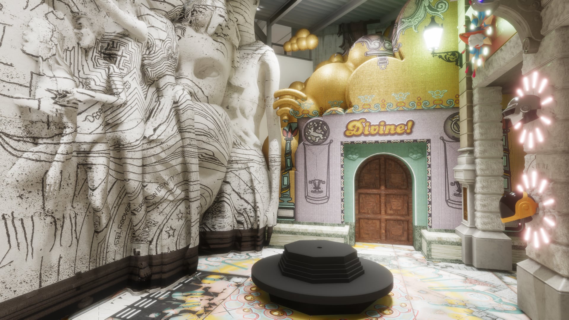 Welcome to the virtual layer of Space Popular's exhibition in Boxen at ArkDes, Sweden’s national centre for architecture and design! “Value in the Virtual” explores the role of architecture in the design of virtual worlds. Articulating a direction for architects and designers that interfaces with cognitive science and colour theory, the installation takes the form of two simultaneously active—one physical (in Stockholm, Sweden) and one virtual (you’re here!). See full-scale fragments of Stockholm distort and replicate to explore how material values between physical and virtual environments could and should be radically recast. You can experience the physical exhibition at ArkDes in Stockholm between September 19th and November 18th 2018. The physical exhibition and its virtual layer exist together, allowing for cross reality interaction. Space Popular is based in London and led by Architects Lara Lesmes and Fredrik Hellberg. “Value in the Virtual” has been curated by James Taylor-Foster.
