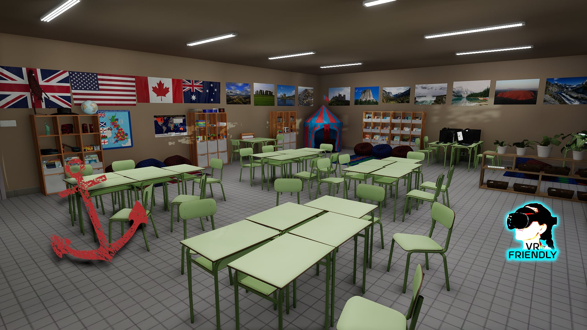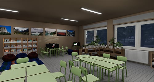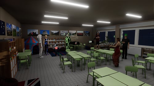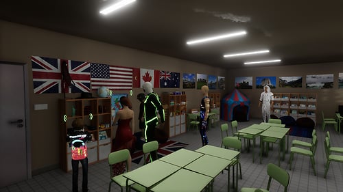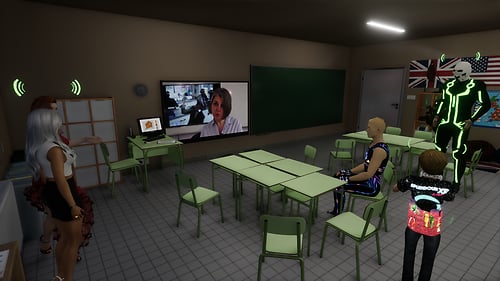 An example of ESL learning environment. Credits: https://skfb.ly/p9ONv tkmedia by Tiki: https://store.sansar.com/store/Tiki-8590 English learning education