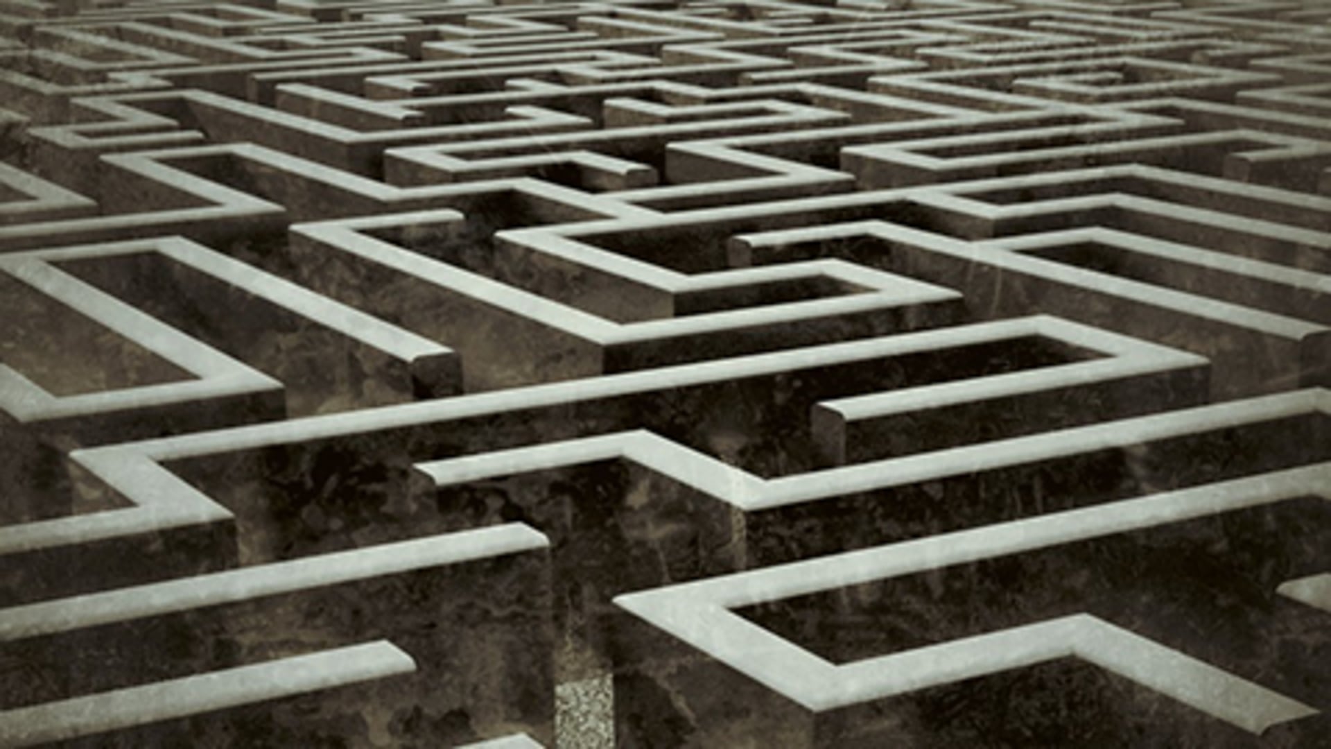 The labyrinth : a place constructed of or full of intricate passageways and blind alleys.