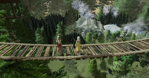 Petite maison à la montagne avec sa rivière, son lac, sa cascade surprise et son camping parcours dans les branches en prenant les catapultes. Little house in the mountains, with its river, lake, surprise waterfall and camping trail through the branches using catapults.. Made in France