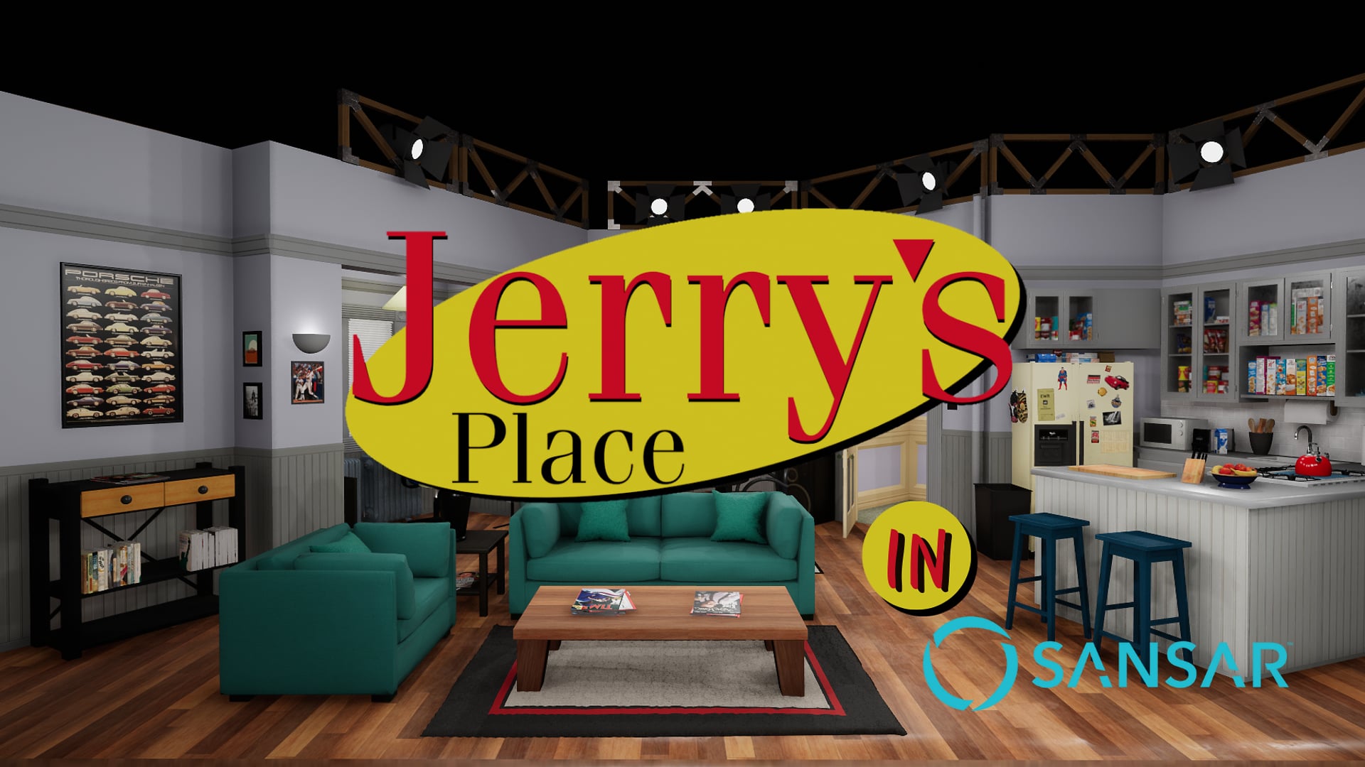 A faithful recreation of Jerry's Apartment from the famous US Sitcom 'Seinfeld'. This experience was created using the original studio set design plans. The set plans have been used to create a real-life miniature replica of the apartment (Google it) and this Sansar experience is the very same model for full VR (and desktop). There are lots of 'easter eggs' contained in this experience for the knowledgeable Seinfeld fans to find and delight! Enjoy!
