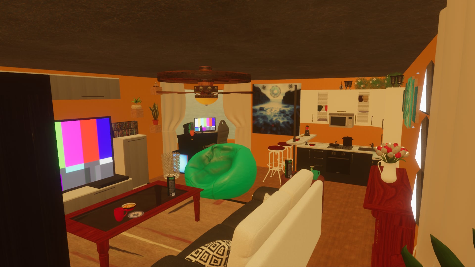 a chill room still working on making every thing to have colision i cant find a desk that has colison the side table with the vace on also has no colision. otherwise every thing shood be good. :)