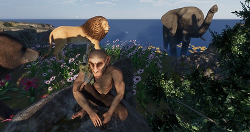 Help the monkey find his way back to the land of life sized animals! There are 15 flower crowns scattered around the experience, only one will take you to the hidden land.